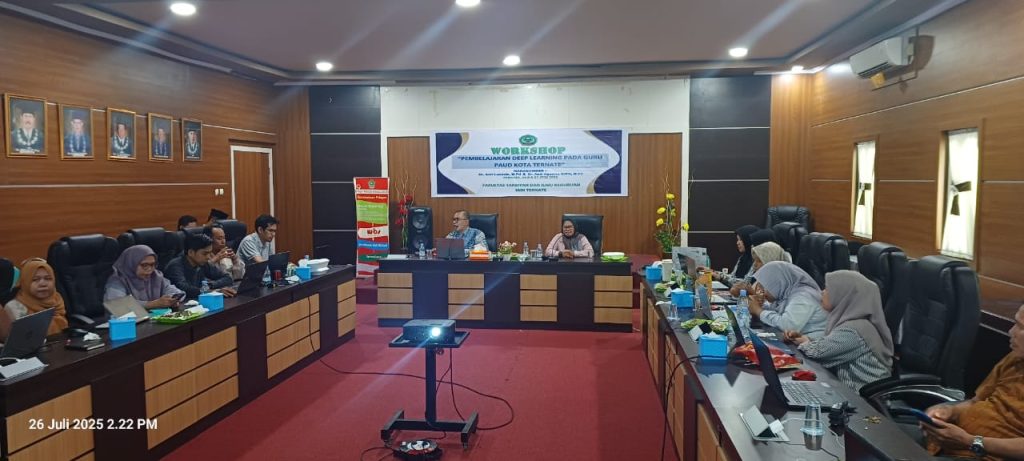 Berita FTIK – Ternate – Wakil Dekan I Fakultas Tarbiyah dan Ilmu Keguruan (FTIK) IAIN Manado, Dr. Adri Lundeto, M.Pd.I, menjadi narasumber dalam kegiatan Workshop “Pembelajaran Deep Learning pada Guru PAUD Kota Ternate” yang diselenggarakan oleh FTIK IAIN Ternate. Kegiatan ini berlangsung pada Jumat-Sabtu (26-27/7/2025) dan dihadiri oleh para pendidik PAUD dari berbagai lembaga pendidikan di Kota Ternate.