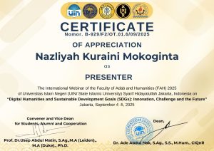 3. Nazliyah Kuraini Mokoginta (PAI), dengan artikel “Integrating the Tabarok Method and Digital Media in Tahfidz Classes: A Humanistic Islamic Education Strategy Towards the SDGs”, dibimbing oleh Dr. Arhanuddin, M.Pd.I
