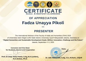 2. Fadza Ukoli (PAI), dengan artikel “Classroom without Walls: Reimagining Humanities Literacy Through A Digital Lens”, dibimbing oleh Dr. Mardan Umar, M.Pd.
