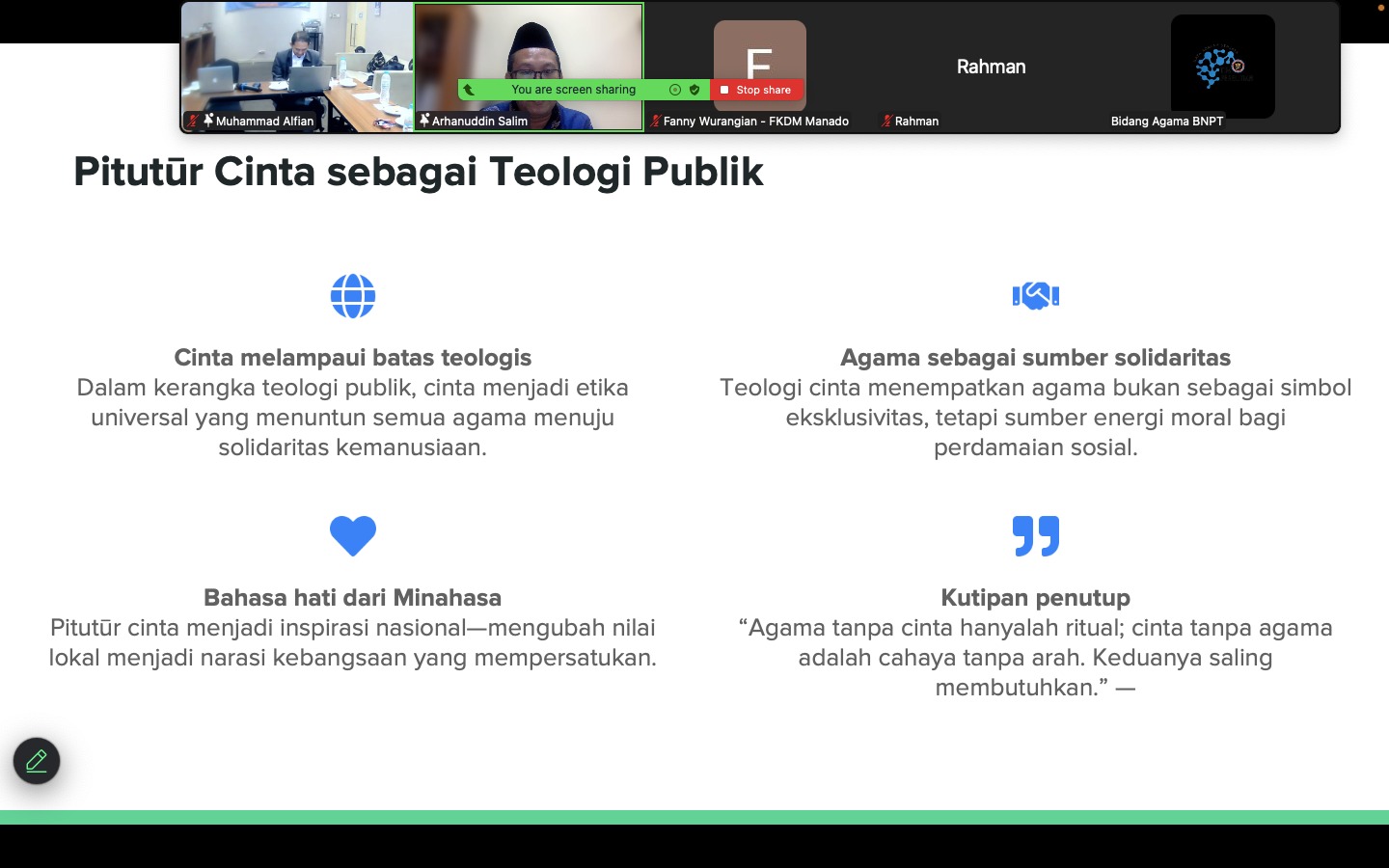 Manado, 29 Oktober 2025 – Dekan Fakultas Tarbiyah dan Ilmu Keguruan (FTIK) IAIN Manado, Dr. Arhanuddin, M.Pd.I, menjadi salah satu narasumber dalam kegiatan Forum Koordinasi Pencegahan Terorisme (FKPT) Provinsi...